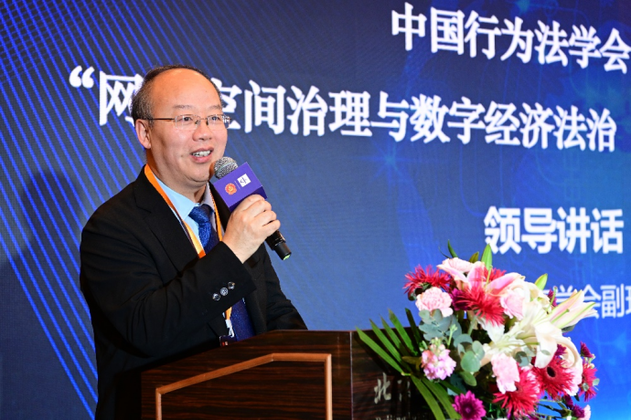 中国行为法学会学术委员会主任江必新的致辞由中国行为法学会总监事、中国人民公安大学原副校长李文燕代为宣读。江必新在致辞中表示,研究基地启动的同时举办“数据治理与隐私保护”高端研讨会,非常好地对接了新时代全面依法治国战略、网络空间安全战略和数字中国建设规划,体现了很强的问题导向,契合国家和社会需要,希望能够为中央和地方依法构建网络空间治理与数字经济法律体系提供智库支撑,为深入推进网络空间和数字经济领域治理体系和治理能力现代化作出积极贡献。以法治保护数据隐私、治理数据,探索推进国家数据治理体系法治化已经成为国际社会的共同需要。为了实现国家数据治理体系法治化,他提出四点意见。首先,要着力为我国数字经济发展创造法治条件,用法治为数字经济发展保驾护航。法治是推动数字经济高质量创新发展的关键,是数字经济治理的重要保障。数字经济立法势在必行,以良法善治保障数字经济新业态新模式健康发展已刻不容缓。其次,法学界要跟上时代步伐,积极面对信息社会快速发展带来的新机遇、新挑战,对数据合规、算法规制、信用治理和个人信息保护等议题进行深入研究。第三,数据治理是一个有机整体,要在国家战略、法律法规、技术保障、标准建设、行业自律等方面同时发力。国家应厘清各数据行政监管机关的数据治理职权,建立多部门协调联动机制,统一执法标准。第四,从数据治理演变的全球态势和力量格局来看,我们身处一个前所未有的剧烈变动期和规则建构期。做好数据治理、强化隐私保护、破解数据安全之困是我们亟待解决的关键课题。要严防和解决数据垄断、不正当竞争、“数据绑架”“大数据杀熟”等违规滥用数据扰乱市场秩序等问题,必须依靠法治手段。中国应当在数据使用和保护的政策法规上进行前瞻性研究,探索确立数据治理的中国原则、制度与框架,形成数据治理的中国方案。
