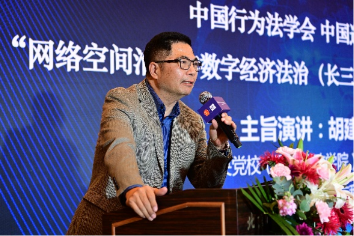 中国行为法学会会长董治良在致辞中指出,“网络空间治理”和“数字经济法治”已是世界范围内的热门关键词之一。近年来,我国在网络安全、数据安全领域立法取得了重大进展,尤其是网络安全法、数据安全法、个人信息保护法的颁布施行,标志着我国网络安全和数据保护的基础性法律架构已经建立。相关的落实和细化基础性法律的行政法规、地方性法规和政府规章还在制定过程中。可以说,我国数据安全保障能力在不断提升,数据开发利用和产业发展得到法律的支持和保障,我国数据潜力即将得以极大释放,产出巨量的经济成果。在这样的大背景下,我们启动成立“网络空间治理与数字经济法治(长三角)研究基地”,以加强网络治理与数字法治理论和实践问题研究,可谓恰逢其时,意义重大。希望研究基地围绕党中央决策部署和国家战略规划,准确对标新时代的新要求,聚合国内外优势科研力量,加强数字治理、数据确权、数据共享、数据开放、数字政府等领域的理论研究,撰写高层次专题报告,努力形成一批有辨识度、有影响力又实效管用的数字法治研究成果,把研究基地办成覆盖长三角地区、服务全国的网络治理与数字经济法治高端专业智库。